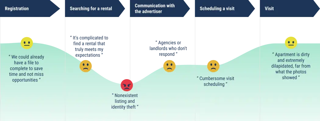 The main issue that emerged from my research and interviews was centered around simplifying the apartment search process: how to save time when looking for a rental and ensure that the listing is genuine.